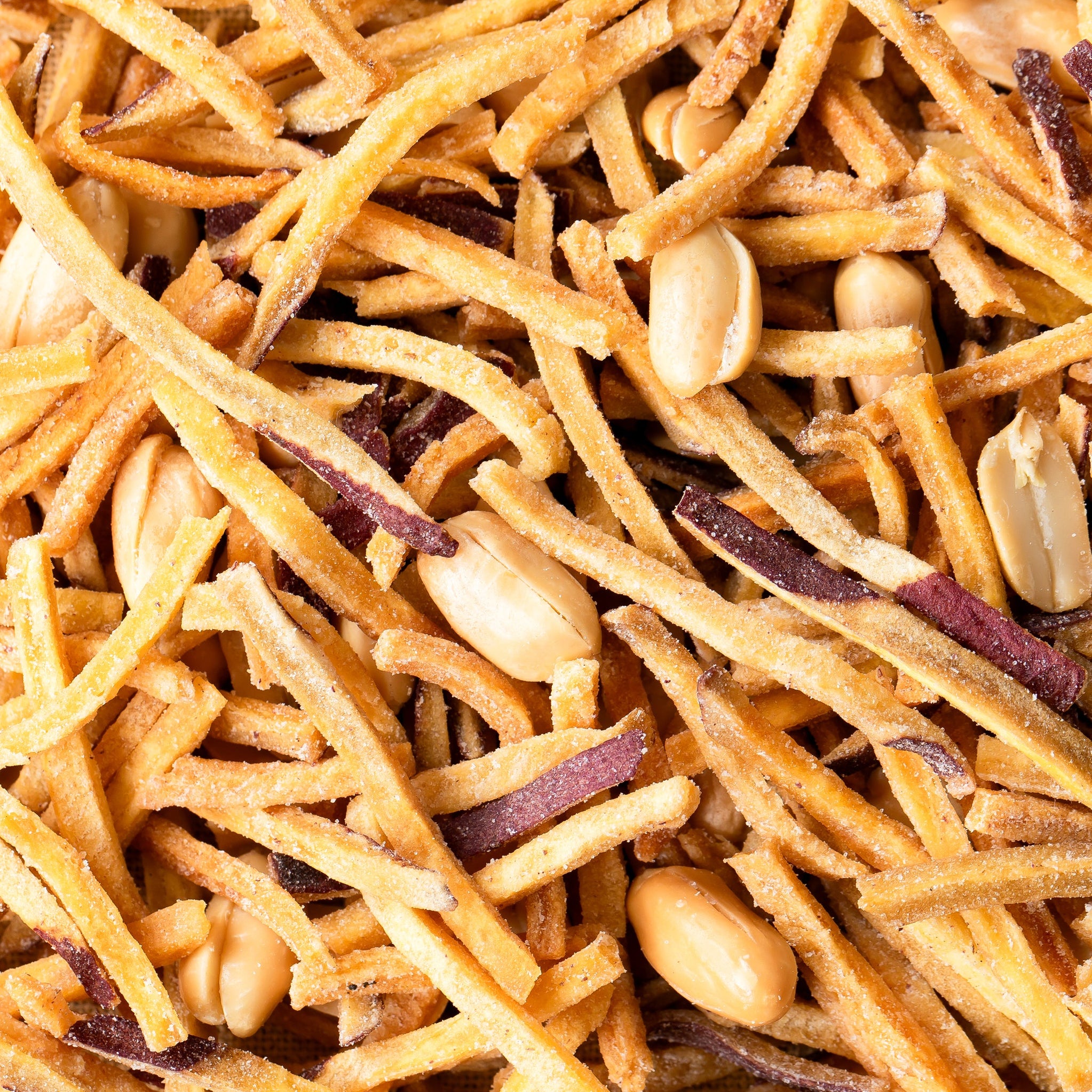 | 原材料名 | さつまいも (国内産)、 落花生、 食用 油、粉末醤油(国内製造)、 西洋わさび、たん白加水分解物、ぶどう糖、 食塩、酵母エキス調味料 調味料 ( アミノ酸等)、香料、 ケイ酸カルシウ ム、(一部に大豆・小麦を含む) |