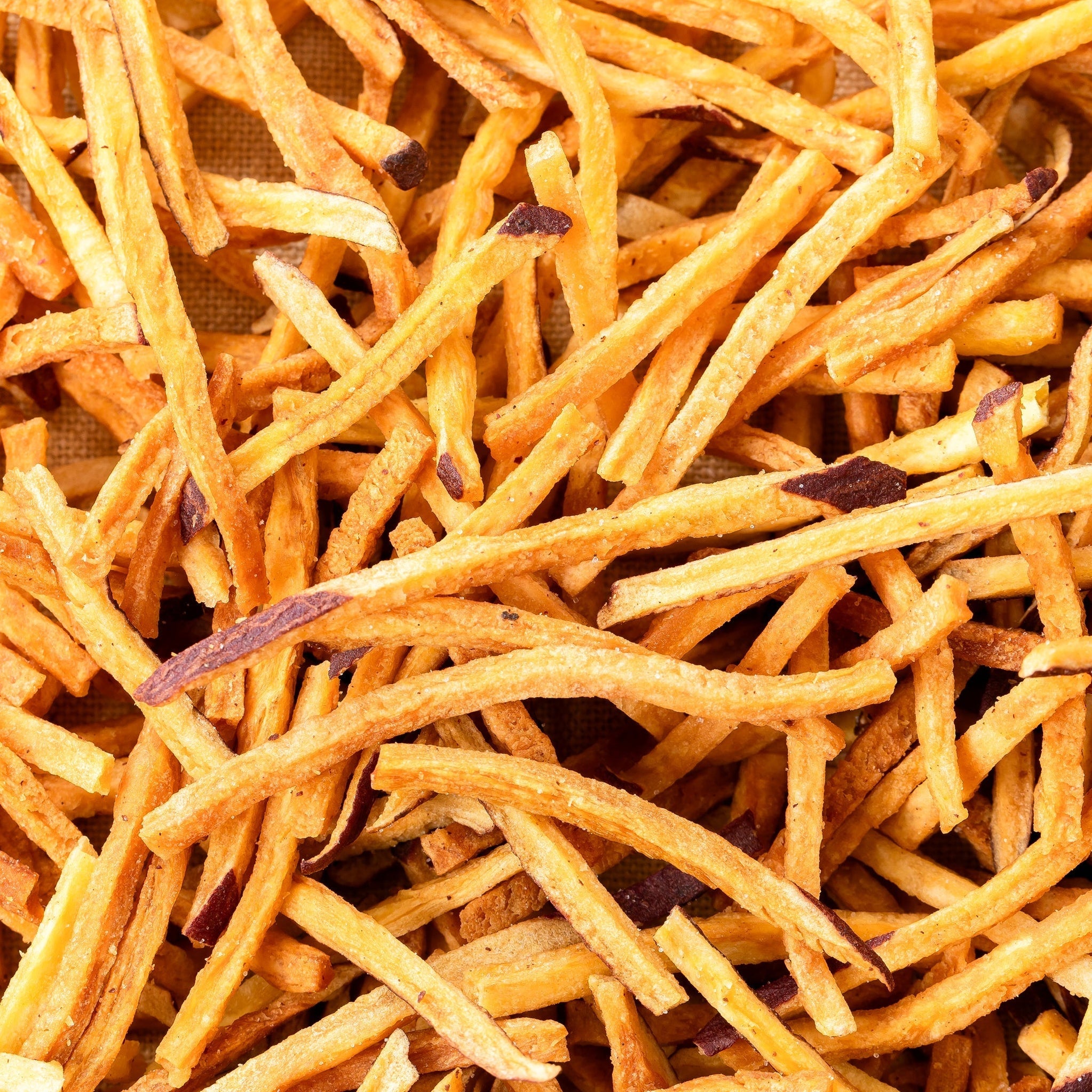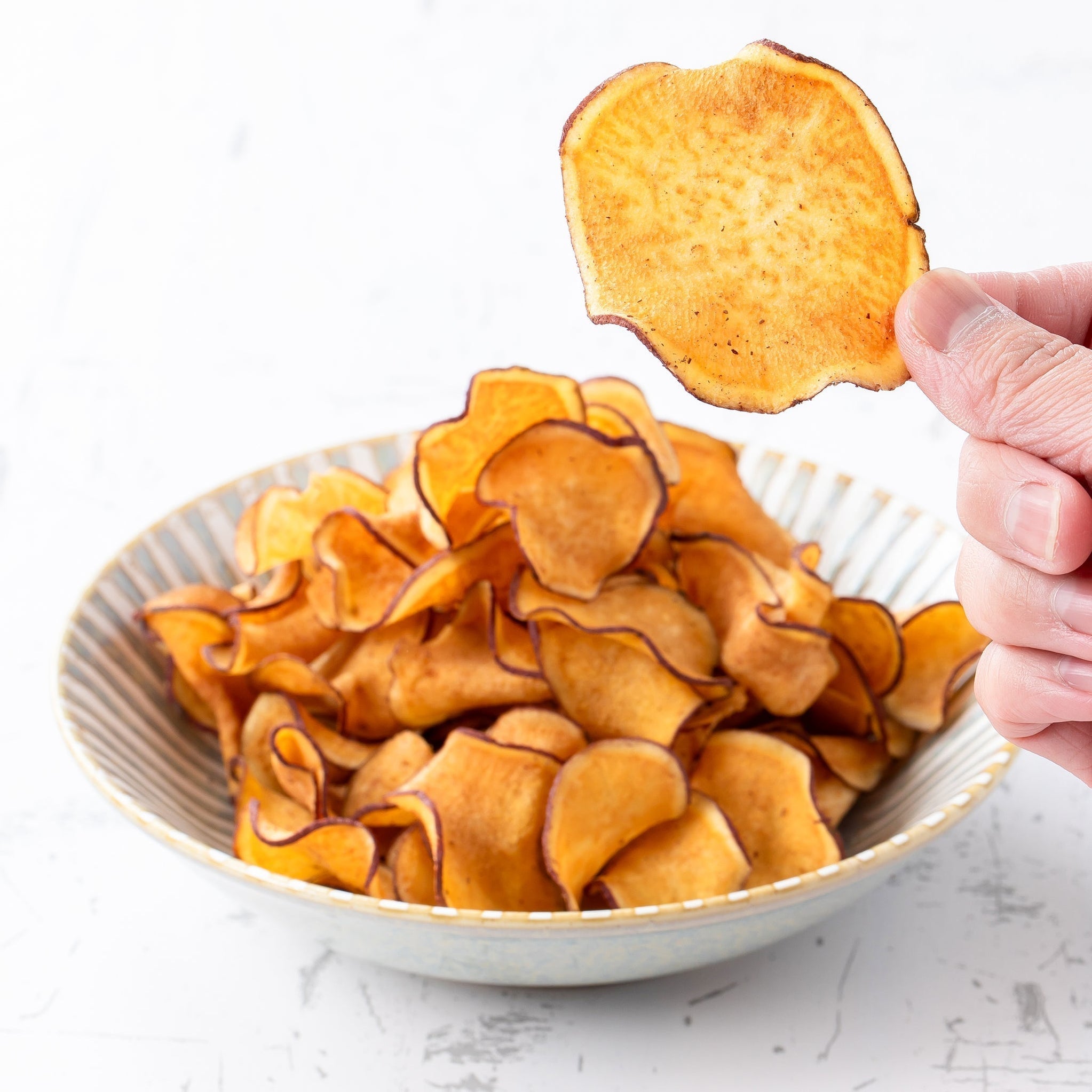 おいも日和の芋けんぴは、芋と砂糖と油でできています。 その3つの材料以外には味付けのエッセンスしか使わない、自然派のお菓子。 何よりもこだわっているのは、その細さです。通常の半分ほどの4mm。丁寧に細く切って手作業でカリッと揚げ、楽しい食感と自然な甘みをご提供します。