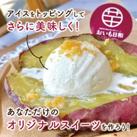 2段階の熟成で完成したみつ芋は、冷やしても温めてもおいしくいただけます。冷やし焼き芋の食感は、 まるでプリンのよう。「シャリシャリ」から「トロトロ」まで、お好みのとけ具合で楽しめます。 バターやチーズ、はちみつなどのアレンジを加えて温めるのも、絶品のおいしさです。