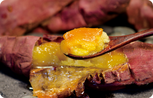 2段階の熟成で完成したみつ芋は、冷やしても温めてもおいしくいただけます。冷やし焼き芋の食感は、 まるでプリンのよう。「シャリシャリ」から「トロトロ」まで、お好みのとけ具合で楽しめます。 バターやチーズ、はちみつなどのアレンジを加えて温めるのも、絶品のおいしさです。
